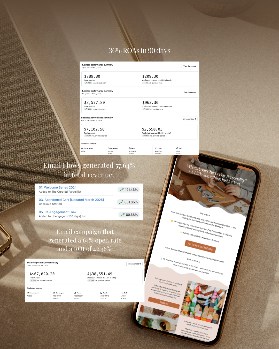 Email isn’t dead — it’s your most profitable marketing channel. I’ll set up automated email flows, high-converting campaigns, and customer journeys so you’re selling while you sleep. From welcome sequences to sales funnels, your list will finally work as hard as you do.
